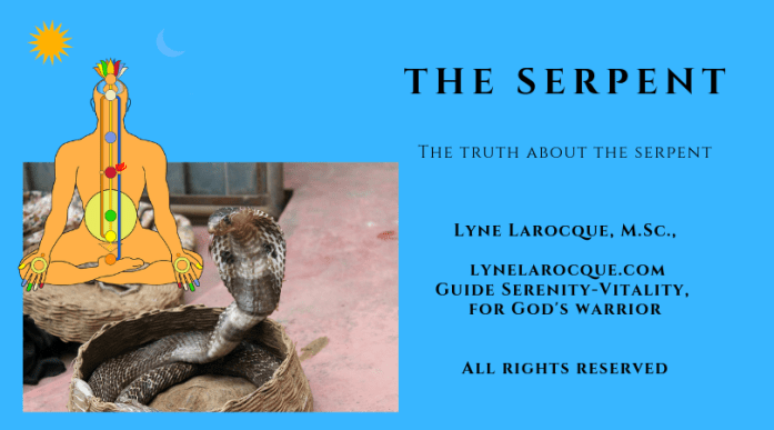 Je me considère assez experte dans le yoga, la méditation et le new age en général. Car je l’ai étudié, pratiqué et enseigné depuis 1998 très intensément. Je vous confirme, qu’on ne peut pas sortir les religions de la méditation et du yoga. De plus, cela m’avait toujours laissée sur mes gardes, mais sachez que les fondements du yoga et méditation est d’éveiller l’énergie kundalini, représentée par un serpent lové à la base de la colonie vertébrale. Souvent je me disais que ce serpent pouvait très bien être lié au serpent avec Adam et Ève, mais je ne réussissais jamais à trouver d’informations à ce sujet jusqu’à l’été dernier.